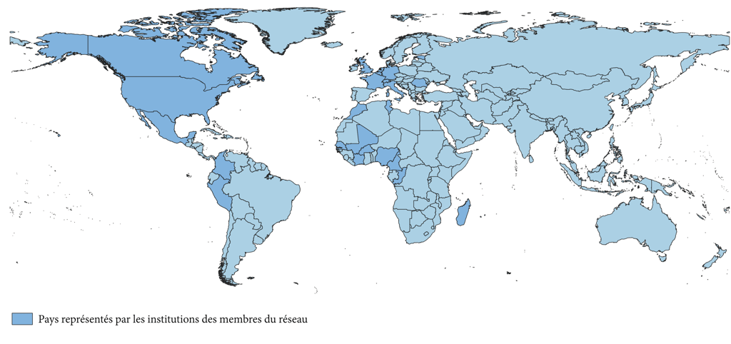 Notre réseau compte actuellement 140 membres venant de diverses institutions et continents, mettant en avant la pluralité de la recherche en géographie. En effet, un grand nombre de sous-disciplines de la géographie sont représentées ainsi que les différents statuts et types de financement. Le réseau se veut inclusif et ambitionne une portée internationale. Nous aspirons à représenter sans distinction d'institution, de type de financement, de statut doctoral, l'ensemble des jeunes chercheur.e.s en géographie.